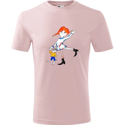 Růžové dětské tričko Pipi Dlouhá Punčocha. nabízené velikosti jsou 4roky,6let,8let,10let. Tričko je zařazeno v sekcích . Technologie tisku: Tisk na tričko je realizován pomocí...