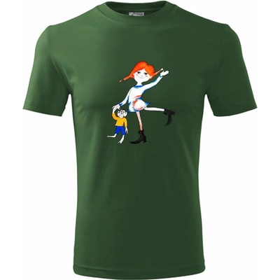 Lahvově zelené tričko Pipi Dlouhá Punčocha. nabízené velikosti jsou S,M,L,XL,XXL,XXXL. Tričko je zařazeno v sekcích . Technologie tisku: Tisk na tričko je realizován pomocí...