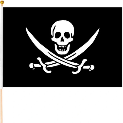*Pirátská vlajka*Materiál: 100% polyester*Rozměr: 30 x 45 cm / 76 cm tyčka Pirátská vlajka. Materiál: 100% polyester Rozměr: 30 x 45 cm / 76 cm tyčka