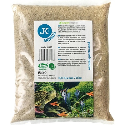 Akvarijní písek JK - šedý (0,3-1,4mm) 2kg Písek do akvária Specifikace produktu - barevný křemičitý písek - vhodný do akvária nebo terária - voděodolný, vysoká barevná a...