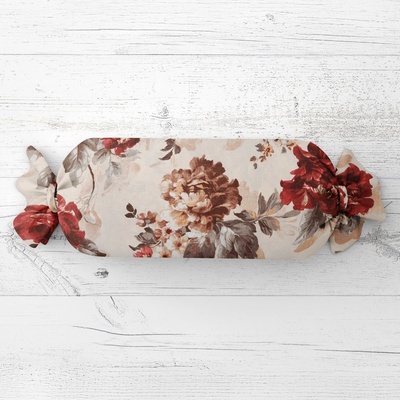 Dekorační válcový polštář „bonbon“ se vzorem červených pivoněk na pískovém podkladu. Povlak je ušitý ze 100% bavlněného plátna s certifikátem zdravotní nezávadnosti Oeko-Tex...