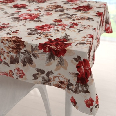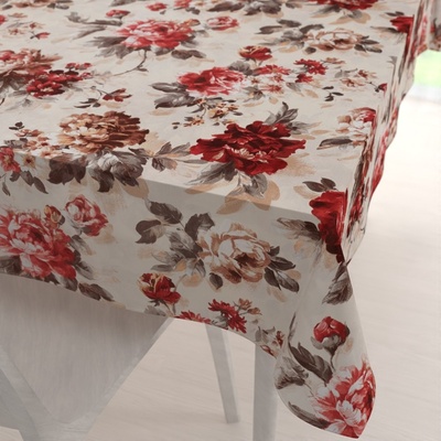 Bavlněný obdélníkový dekorační ubrus na stůl se vzorem červených pivoněk na pískovém podkladu. Je ušitý z hustě tkaného 100% bavlněného plátna s certifikátem zdravotní...