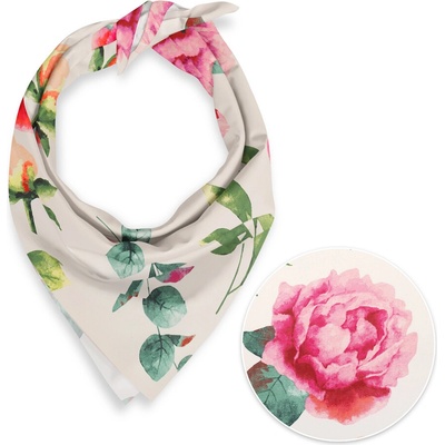 Bavlněný šátek se vzorem velkých růžovočervených pivoněk na smetanovém podkladu. Je ušitý z kvalitního hustě tkaného 100% bavlněného plátna s certifikátem zdravotní nezávadnosti...