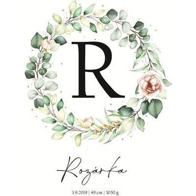 Krásný minimalistický plakát s počátečním písmenem jména Vašeho miminka s motivem pivoněk. Tento plakát s možností úpravy textu je naprostým originálem pro každého z Vás....