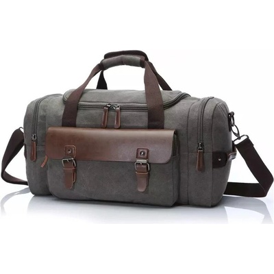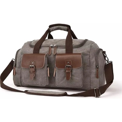 Originální cestovní taška z bavlněného plátna, které působí moderním a obnošeným vzhledem. Taška je opatřena mosaznými doplňky a odnímatelným pásem na rameno, kterému nechybí...