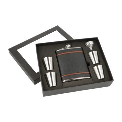 Sada nerezová placatka na alkohol s pohárky a nálevkou. Likérka je vyrobená z kvalitní nerezové oceli s leštěným povrchem. Placatka je potažená černou koženkou v kombinaci s...
