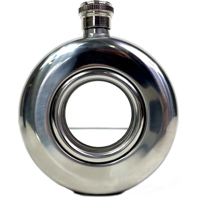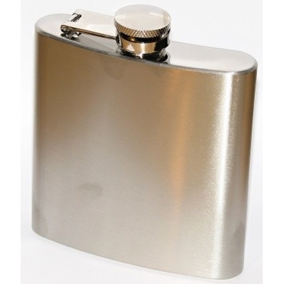 Krásný stylová placatka na alkohol v nerezovém elegantním provedení se šroubovým uzávěrem. Ze přední strany průhledná. Objem 150 ml (5oz), rozměr: 10 x 8,5 x 2,5 cm.