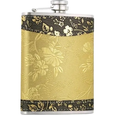 Placatka z nerezové oceli 304 o obsahu 240 ml, ozdobená květy. Láhev má masivní šroubovací uzávěr s vnitřním závitem.