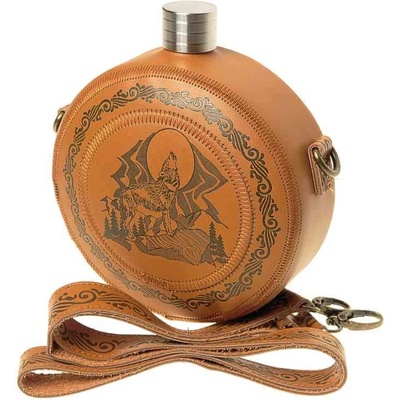 rozměry:výška s víčkem: 20 cmprůměr: 16 cmtloušťka: 6 cm objem: 1,2 L / 42 ozmateriál: nerez, imitace kůže kulatá mega placatka XXL v kůži vlk 1,2 L | dárek pro...