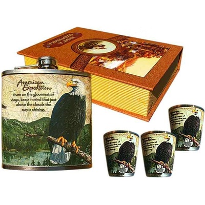 Placatka Orel s 3 pohárky - kazeta kniha rozměry placatky: výška: 10,5 cmšířka: 10 cmtloušťka: 2,2 cm objem: cca 2 dclobjem pohárku: cca 2 cl specifikace: • velmi pěkná...
