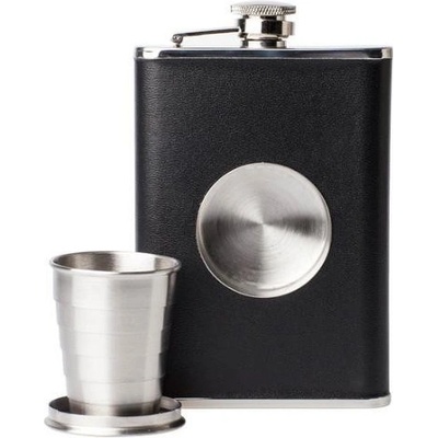 Nerezová placatka v kožence a dárkové sadě. Sada obsahuje: - 1 x placatka - 4 x panák - 1 x nálevka Obsah 266 ml. Dodáváno v dárkové krabičce.