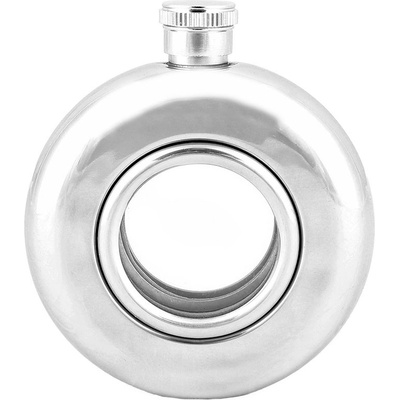 Nerezová placatka kulatá 2x sklo rozměry: výška 10,5 cm, průměr 9 cm, tloušťka 3 cm, objem cca 150ml Netradiční kapesní nerezová likérka na alkohol o objemu 150 ml, placatka s...