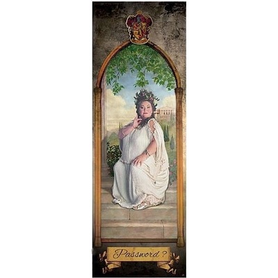 Oficiální plakát a doplňkové zboží z katalogu produktů s logem a grafikou filmové ságy o Harrym Potterovi. Plakát s grafikou Tlusté dámy z filmové ságy Harry Potter. Znáte tajné heslo pro vstup do nebelvírské věže? Velikost plakátu: 53 cm x 158 cm Design: hnědý "rám"