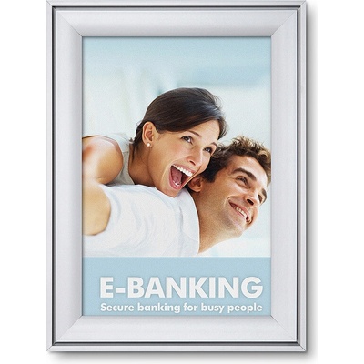 klaprám - provedení oblé rohy - antireflexní fólie součást balení - uchycení na zeď pomocí šroubů - zadní stěna ze šedého plastu - barva stříbrný elox - snadná výměna grafiky se...