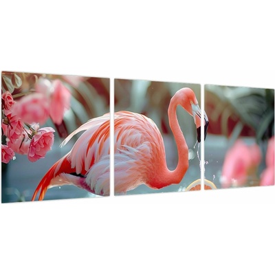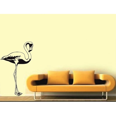 Samolepka plameňáka se dobře hodí na ozdobu užšího prostoru na zdi.