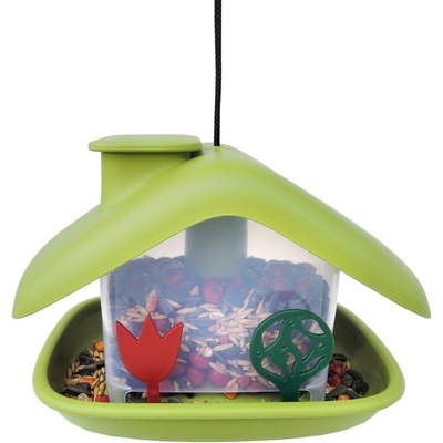 - Krmítko má nejen atraktivní design, ale i dobře vymyšlenou konstrukci - Tři varianty umístění: zavěšení, připevnění na zábradlí nebo na tyč (kůl) - Vyrobeno z odolného plastu, dá se pohodlně rozložit a vymýt - Semínka se doplňují skrz komínek domku - Do krmítka...
