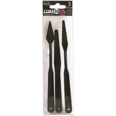 Sada tří plastových špachtlí vhodných pro práci s pastami, gely a barvami. Plocha špachtlí 1,5x7,5cm, 1,3x6,5cm, 1,5x4,5cm. Špachtle po práci hned umyjte, nenechte zaschnout nečistoty. Špachtle nejsou atestovány a nejsou určeny pro potravinářské účely.