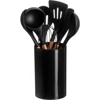 PŘÍSLUŠENSTVÍ NA VAŘENÍ KUCHYŇSKÉ LŽÍCE SADA S NÁDOBOU 7 ks ČERNÝ Kompletní sada kuchyňských doplňků s nádobou – ideální řešení pro každou kuchyni se 7 potřebnými nástroji...
