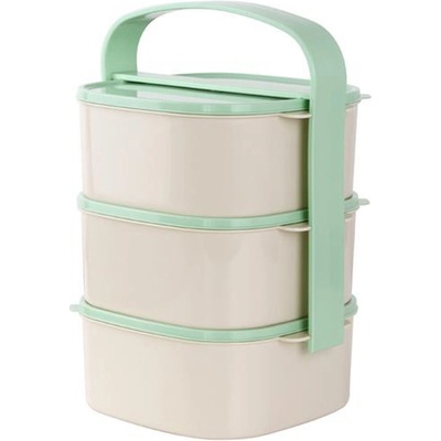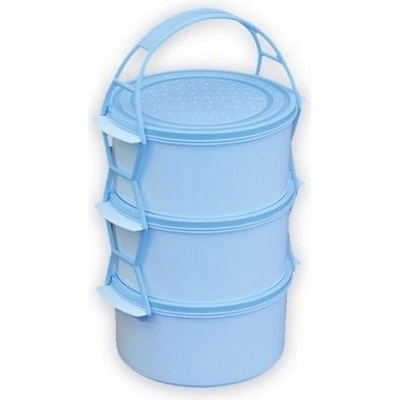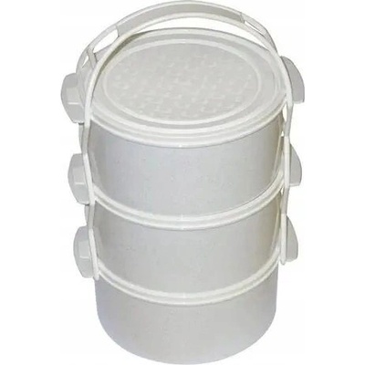3 díly: 3 x 1,5 l materiál: plast Box na ukládání a přepravu jídla, složený ze 3 dílů, které jsou navzájem propojené držadlem.