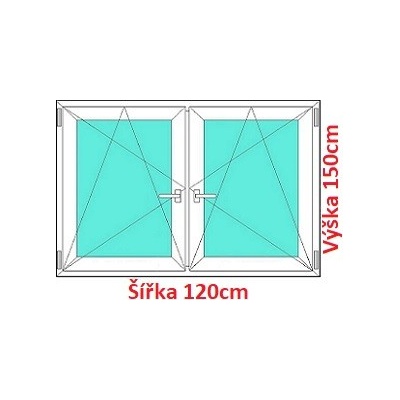 Skladem – dvoukřídlé plastové okno Otevíravé + Otevíravé i sklopné v rozměru 120x150 cm + 3 cm podkladní parapetní lišta je bez sloupku (Stulp) a křídlo s klikou je na pravé...