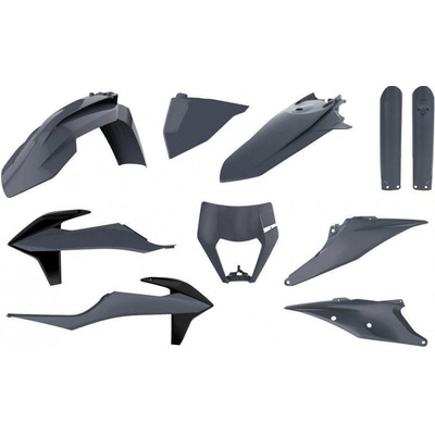 90917, POLISPORT kompletní plasty KTM EXC/EXF 20, barva šedá NARDO GREY (šedé světlo 8668600006 kryty šedé 8398600011 kompletní)