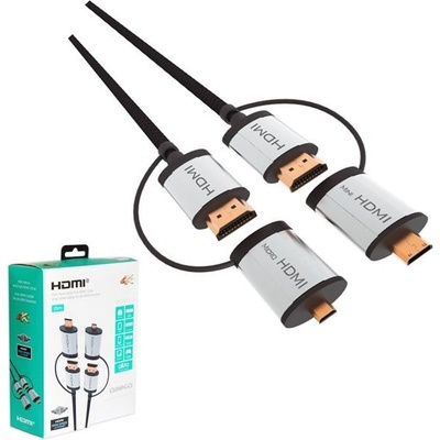 Kvalitní digitální kabel HDMI pro přenos videa a zvuku bez komprese a ztráty kvality. Umožňuje zobrazit 4K UHD, Full HD 1080p / 1080i nebo 720p HD Ready.Obsahuje kabel adaptéru...