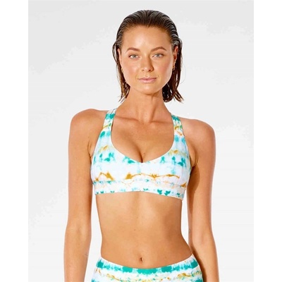 Model beach classics bralette od značky Roxy. Kolekce 2023. Barva bílá + modrá/růžová. Materiál: 87% recyklovaný nylon, 13% elasten.