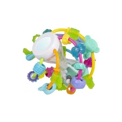Zábavný hrací míček pro děti od 9 měsíců. Veselé barvy rozvíjejí zrak. Různé tvary a vzory posouvátek rozvíjí jemnou motoriku. Kuličky a posouvací částky chrastí a rozvíjí sluch. Díky zrcátku můžou hrát děti na jukanou. Ideální hračka pro rozvoj všech smyslů. Skvělý...