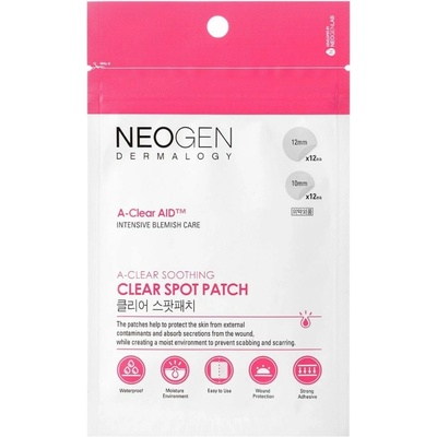 Neogen Derma logy A-Clear Soothing Spot Patch až voděodolné hydrokoloidní náplasti na nedokonalosti , které účinně redukují výskyt pupínků a absorbují akné sekrety....