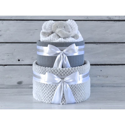 Roztomilé dvoupatrové plenkové dorty jsou laděné do jemných odstínů šedé a bílé a potěší nastávající rodiče dvojčat hned dvojnásobě! Luxusní vzhled dotvoří dárkové zabalení do...