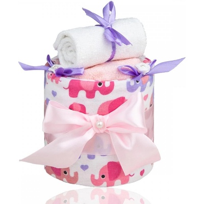Jemný plenkový dort v růžových světlých odstínech je přímo stvořený pro novorozenou priceznu. Medvíka s chrastítkem si miminko zamiluje a rodiče budou nadšení z kvalitní...
