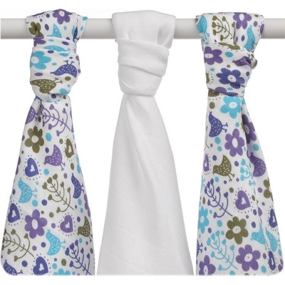 KIKKO Bambusové pleny Flowers and birds Boys mix 3ks ---Extrémně jemná tkanina Dokonale savá Antibakteriální Rozměr 70 x 70 cm 3ks v balení