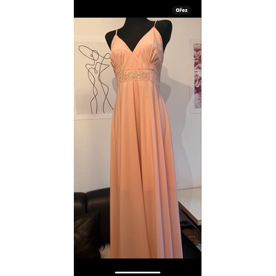 Šaty jsou ušity z hladkého šifonu v pudrové barvě. Cena 2500 Obvod prsa 80-86 cm Obvod pas 64-70 cm Délka sukni 113 cm