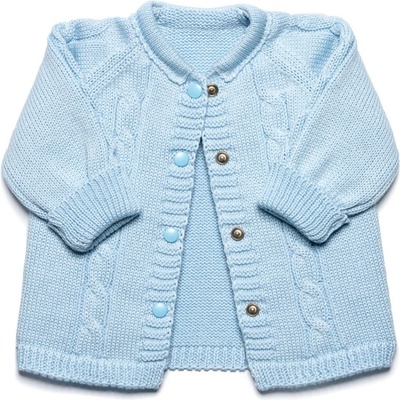 Svetřík pro miminka "Cop" je vyrobený z jemný, vysoká kvalita příze OEKO-TEX®100. Kojenecký svetřík má hladký úplet vkusně doplněný o vzor zapleteného copu na přední straně...