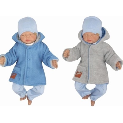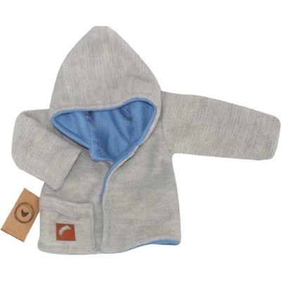 Z&Z Pletený oboustranný svetřík kabátek s kapucí modro-šedý