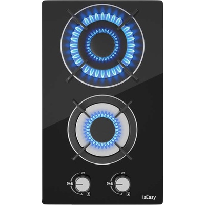 Plynová varná deska IsEasy Glass se 2 hořáky Podrobnosti o produktech: - Šířka: 31 cm - Typ desky: Plynová - 2 plynové hořáky - 3300 W + 1000 W - Barva: Černá - Zapalovač v...