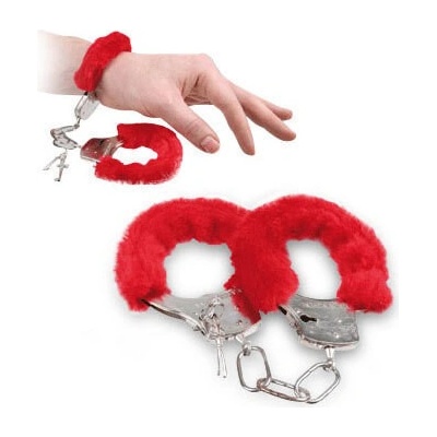 Kovové pouta potažena červeným plyšem. Tyto plyšové pouta v červené barvě mohou být i výborným dárkem pro přítele a nebo přítelkyni. Při používání plyšových pout se dá zažít hodně zvláštních věcí, třeba je použít na manželku, a nebo manžela když nechce již mýt nádobí....