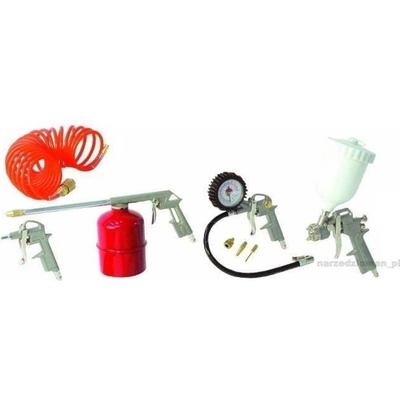 - Dlouhá vyfukovací pistole - Gravimetrická stríkací pistole 0,5 l - Sprejová mycí pistole - Hustící pistole - Vzduchové/Vodní mytí - Sada 3 hustících nástavcu - Hadice (5 m)