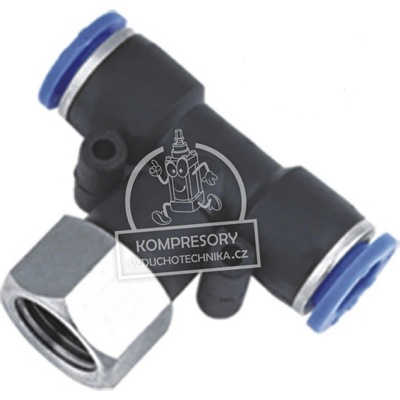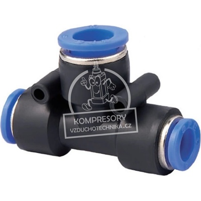 T-spojka v plastovém provedení pro montáž hadičky 6 mm s větší spodní odbočkou 8 mm - Nástrčné spojky se zmenšenými rozměry a hmotností, pro rychlou a jednoduchou montáž plastových hadiček - Použité materiály: nylon, polyuretan a poniklovaná mosaz MS 58, závity s...