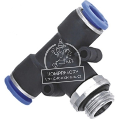 T-spojka v plastovém provedení pro montáž hadičky 6 mm s větší spodní odbočkou 10 mm - Nástrčné spojky se zmenšenými rozměry a hmotností, pro rychlou a jednoduchou montáž plastových hadiček - Použité materiály: nylon, polyuretan a poniklovaná mosaz MS 58, závity s...