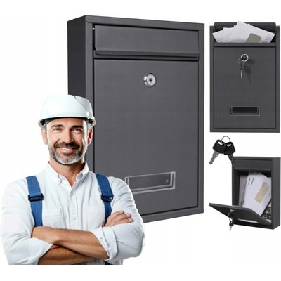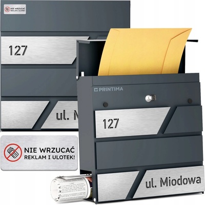 ⭐️ VELKÁ POŠTOVNÍ SCHRÁNKA S ADRESOU®️ PRINTIMA - Antracit RAL 7016 - Rozměr 37 x 37 x 10.5 cm - Vhoz - Schránka na noviny - Vlastní adresa nebo jiné údaje - Výběr z mnoha...