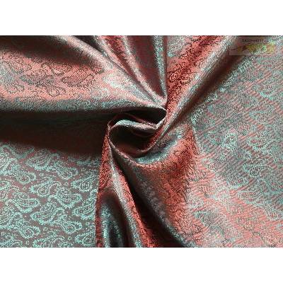 Tato zeleno červená žakárová podšívka (směs acetát viskoza) je vhodná na podšití šatů, sak, tunik, nebo sukní