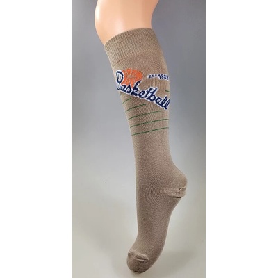 Bavlněné podkolenky pro kluky, motiv - basketbal, míč, pásky, ideální na přechodné období, pohodlně se nošení díky elastanu, jsou příjemné na dotek.