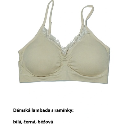 dámská lambada- ramínka (posunovatelná), vpředu krajka - složení 92% polyamid, 8% elastan, přední část je vyztužená vycpávkami (dají se vyjmout pryč), lambady jsou hezky...