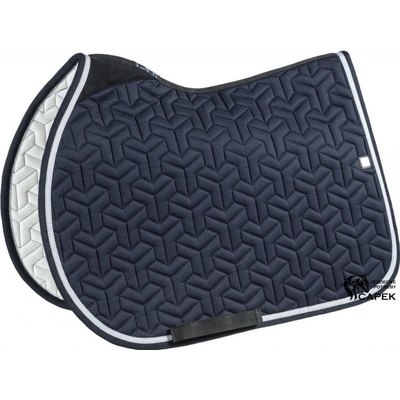 Elegantní podsedlová dečka s kontrastním povedením barev. elegantní prošev 900g antibakteriální polstrování ekologická podšívka tlumící systém ACS 2 bílé/černé logo v kontrastním provedení popruh k připevnění k podbřišníku Zákazníci hledají také: dečka na koně, skoková...