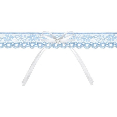 Krajkový podvazek ve světle modré barvě s bílou mašličkou. Výborný doplněk pro budoucí nevěsty. Rozměr: šířka 2,5 cm