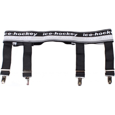 Hokejové podvazky s kovovými úchyty pro štulpny.Zapínání v pase na suchý zip umožňuje přesně a v širokém rozsahu nastavit potřebnou velikost. Velikost junior pro obvod pasu v širokém rozsahu 60 - 80 cm