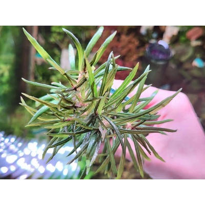Původ: pochází z tropické jihovýchodní AsieČeleď: LamiaceaeMorfologie: Nad vodou rostlina vytváří plazivé růžice velmi hustě olistěné. Listy vyrůstají v hustých přeslenech, jsou čárkovitě protažené 4-6 cm dlouhé a jen asi 2-4 mm široké, zelené až načerv