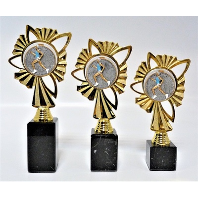F32-830-L219. Velikost trofejí 21 cm včetně mramorového podstavce. Při nákupu jedné sady trofejí (zlatá, stříbrná, bronzová) - text na štítek napište jen do rubriky "štítek na"...