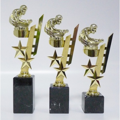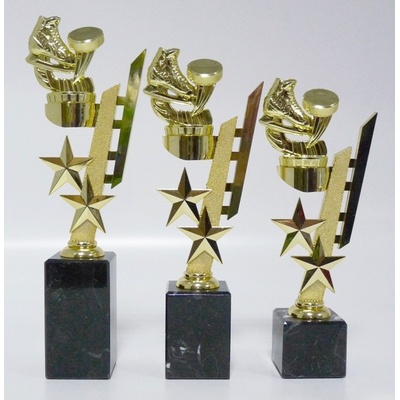 F32-830-25. Velikost trofejí je 21 cm včetně mramorového podstavce. Při nákupu jedné sady trofejí (zlatá, stříbrná, bronzová) - text na štítek napište jen do rubriky "štítek na"...